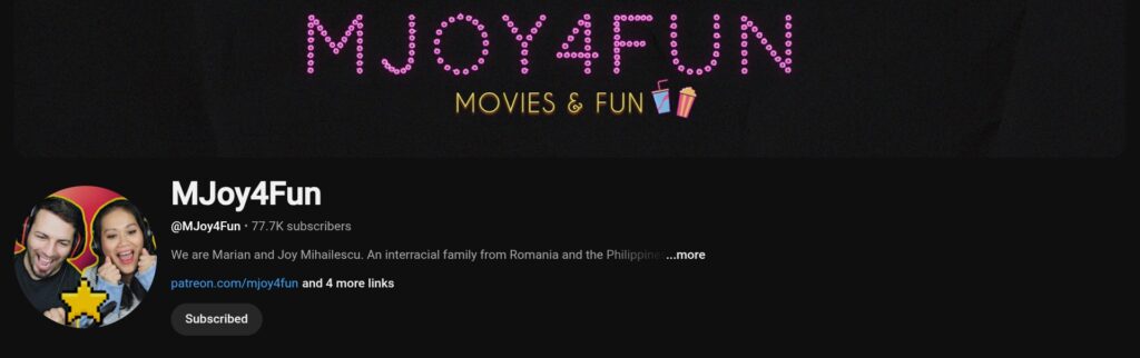 A married couple from, I think, Eastern Europe reacts to mostly American movies. They bring zero snark and plenty of homespun charm.