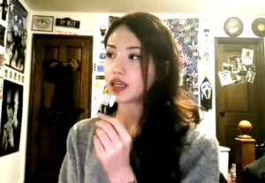 Unless this girl’s an actress who has me fooled, she is the girl-next-door type who, although sometimes a bit slow on the uptake, rivals MJoy4Fun on the charm scale. Oh, yes: she reacts to movies and TV.